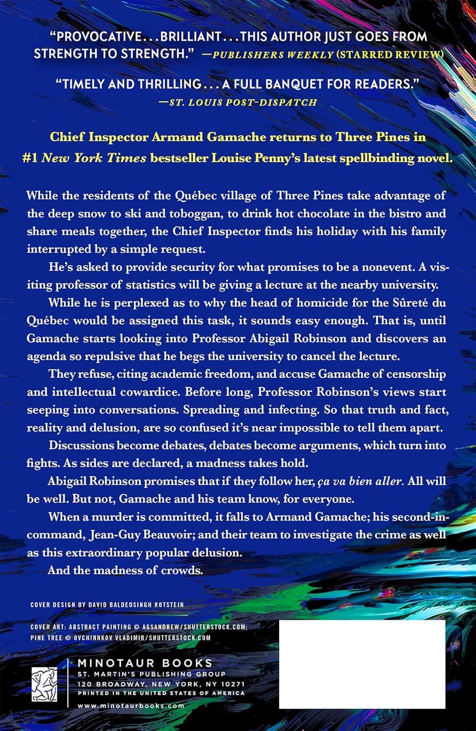 The Madness of Crowds is the seventeenth mystery novel in Louise Penny’s Gamache series. Armand Gamache, his wife Reine-Marie, and their children, grandchildren, and Armand’s godfather, Stephen Horowitz are all back in Three Pines. Armand is hard at work as the Chief Inspector of the Homicide division at the Sûreté du Québec, and his son-in-law, Jean-Guy Beauvoir, is his co-second as he readjusts to being back in the thick of things. This time, Penny tackles an extremely controversial subject coming out of the pandemic, the subject of euthanasia, but from an unexpected direction. At the end of the previous installment, Annie and Jean-Guy welcomed their second child into the world, a daughter they named Idola. Theirs was an informed choice to complete the pregnancy even though they found out early on that their child had Down Syndrome. They could have aborted the fetus, but instead chose to bring their daughter into the world, to love her, to care for her, and give her the best life they possibly could. Dark forces are amassing though, and their world is rocked by controversy. In the story, a famed statistics professor, Abigail Robinson, had recently released a report from the pandemic that suggested that resources were limited, and that it would be better for society if people who were old or infirm weren’t necessarily given life extending treatments and were instead allowed to die. More to the point, that for the good of society, she posited that they essentially had a duty to die. That of course hits very close to home for Armand and company, and especially for Jean-Guy and Annie. [Continue reading]