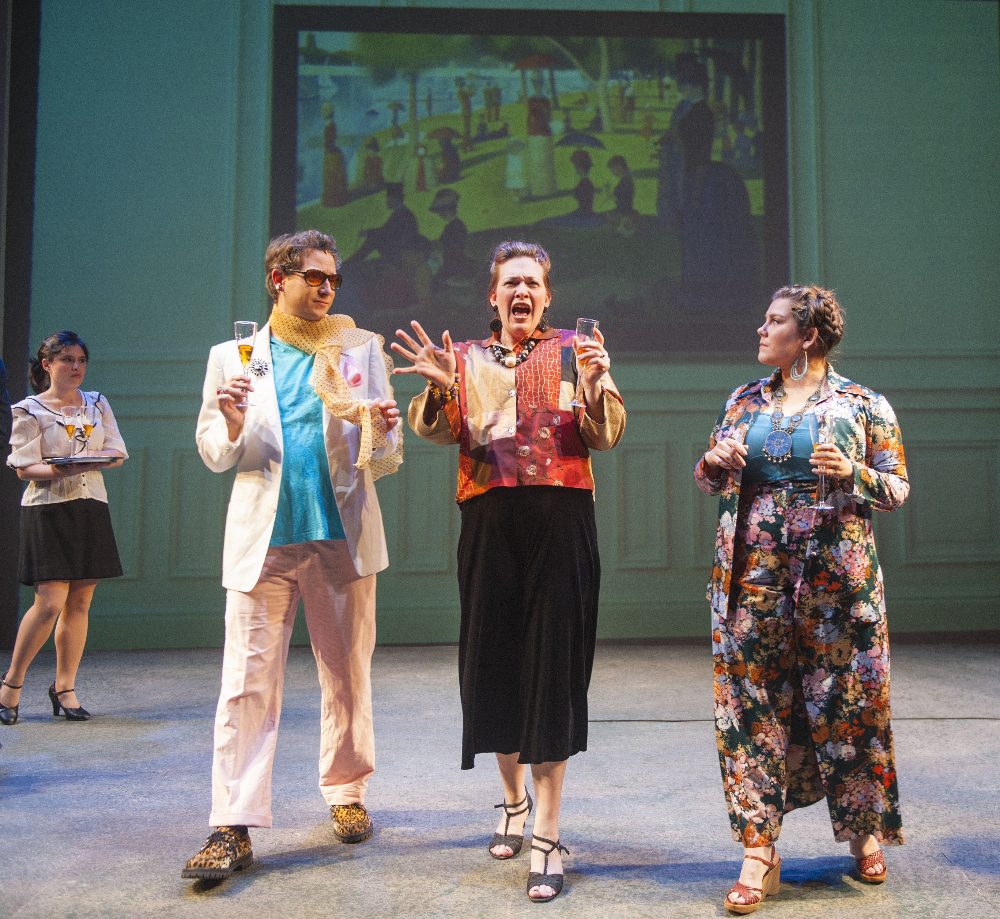 In Act 2 the story resumes in the park where Act 1 leaves off in a delightful number called “It’s Hot Up Here.” The cast, sans Georges, is stuck in the painting, and in addition to being musically interesting, the number is insightful and very funny. Once the story jumps forward in time, most of the cast members have a modern day role as well, far removed from their 19th century characters, and it’s interesting to see the contrasts.
