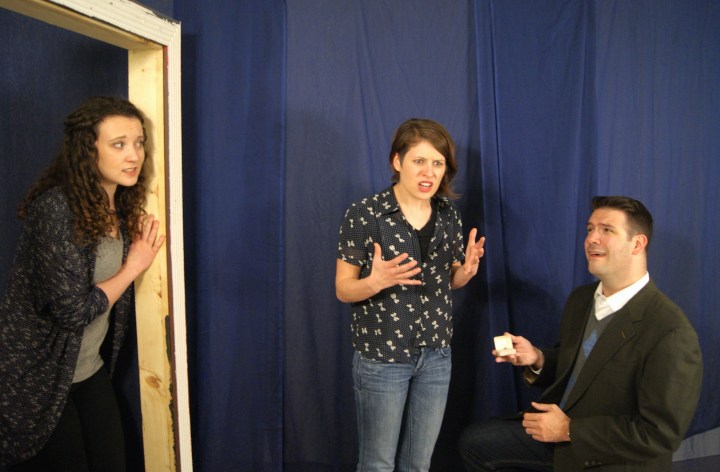 Proposal is a lighthearted piece that takes an enlightening look at feminism as it pertains to societal norms surrounding that all-important decision about whether to marry or not. Although written with comic flair, the question in a marriage proposal is valid, and despite convention, does it really matter who asks it in the end? The piece features Mitchell, Aronica, and Moriarty, all capturing both the comedy and thoughtfulness of the piece very nicely.
