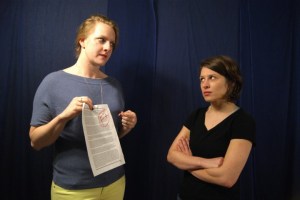 Meantime in Between Time is another, mostly somber piece where sisters (Middlebrook and Whismore) come together to sort through their deceased brother’s belongings. There are a few lighter moments, but there is also conflict here as we find that their dearly departed brother, Benny (Smith), was troubled in life. The writing is a little compact, but the story is poignant. Both Middlebrook and Whismore punch the emotion of the situation with conviction making the character journey in this short piece compelling.