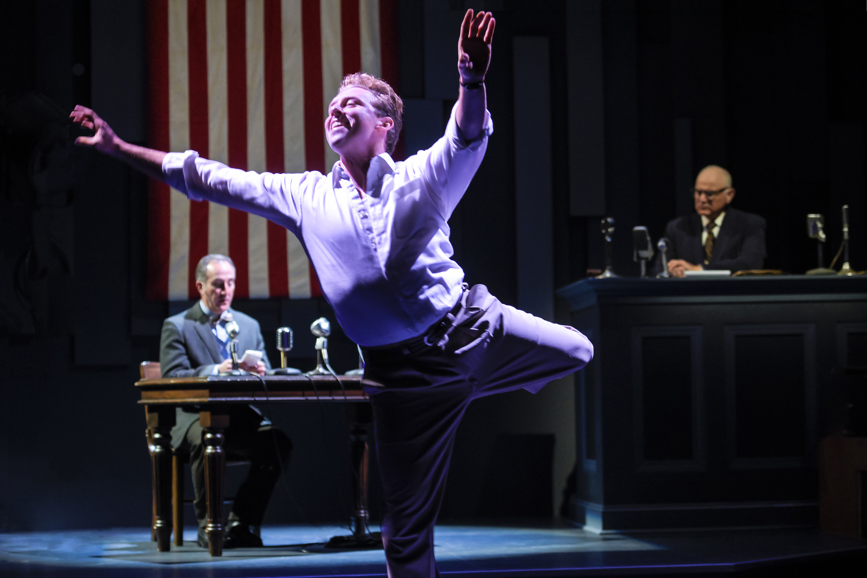 Director Giovanna Sardelli helmed the Off-Broadway production as well as this TheatreWorks West Coast Premiere of the work, and her staging is gripping. Her TheatreWorks cast includes: George Psarras (Café Society Pianist/Sergeant-at-Arms), Jim Stanek (Mickey Dobbs), Robert Sicular (Representative Francis Walter), Gabriel Marin (Fred Lang), Richard Frederick (Martin Berkeley/Phil Larson/Lee J. Cobb/et al), Michael Barrett Austin (Victor Lynch/Stanley/Elia Kazan/Budd Schulberg/et al), Donna Vivino (Natalie Meltzer), and Leo Ash Evens (Bobby Gerard).