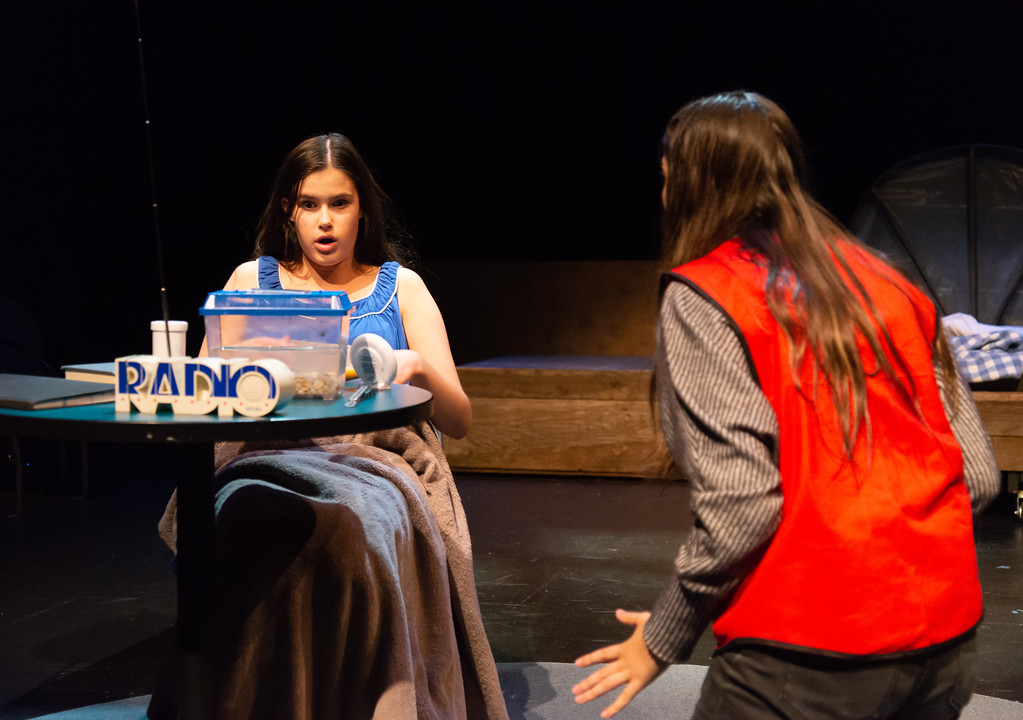 The play follows a pair of sisters, Marily (Anna Feenstra) and Senna (Mia Trubelja). They are unfortunate because they are twice orphaned, first by their birth parents and later by their adoptive parents, the latter disappearing under questionable circumstances. The older sister, Senna, takes care of Marily, though their relationship is a tad unusual. Since being orphaned a second time, Marily spends the vast majority of her life asleep, living in her dreams. Through the story, we find that she has a history from early childhood of having predictive dreams, and Senna has learned to trust Marily’s proclamations. In fact, Senna keeps a journal of Marily’s dreams, and since their adoptive parents’ disappearance, Marily has been searching for them in her sleep.