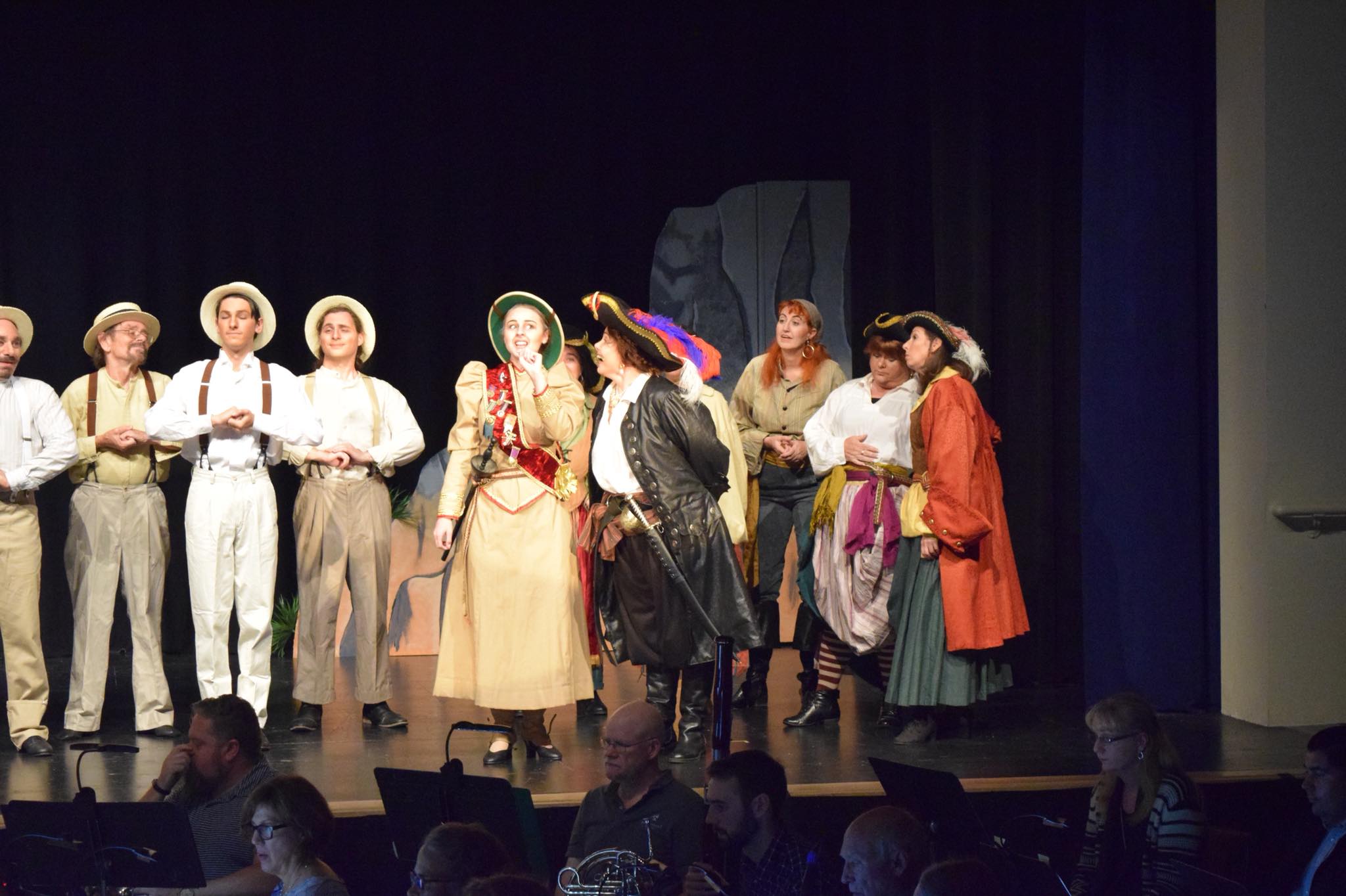 Brennah Kemmerly (Major-General Stanley) has the confused motherly figure down, especially late in Act II when things are happening right under her nose but comically escape her notice. Her diction in “I am the very model of a modern Major-General,” one of the most challenging songs in the show, isn’t crystal clear. Part of that may be due to the range in which she is singing obscuring some of the clarity, and part may be that it’s just hard to get all the words out. She is a little behind the orchestra on this one, and some of the words are lost. Her interactions with her sons is touching though, and she is a convincing matriarch in her domain. Jennifer Basarab-Tung (Sergeant of Police) acts her role confidently, but she is slightly overshadowed by the police chorus. Although none of the cast or orchestra members are amplified, Basarab-Tung would benefit from a little boost.