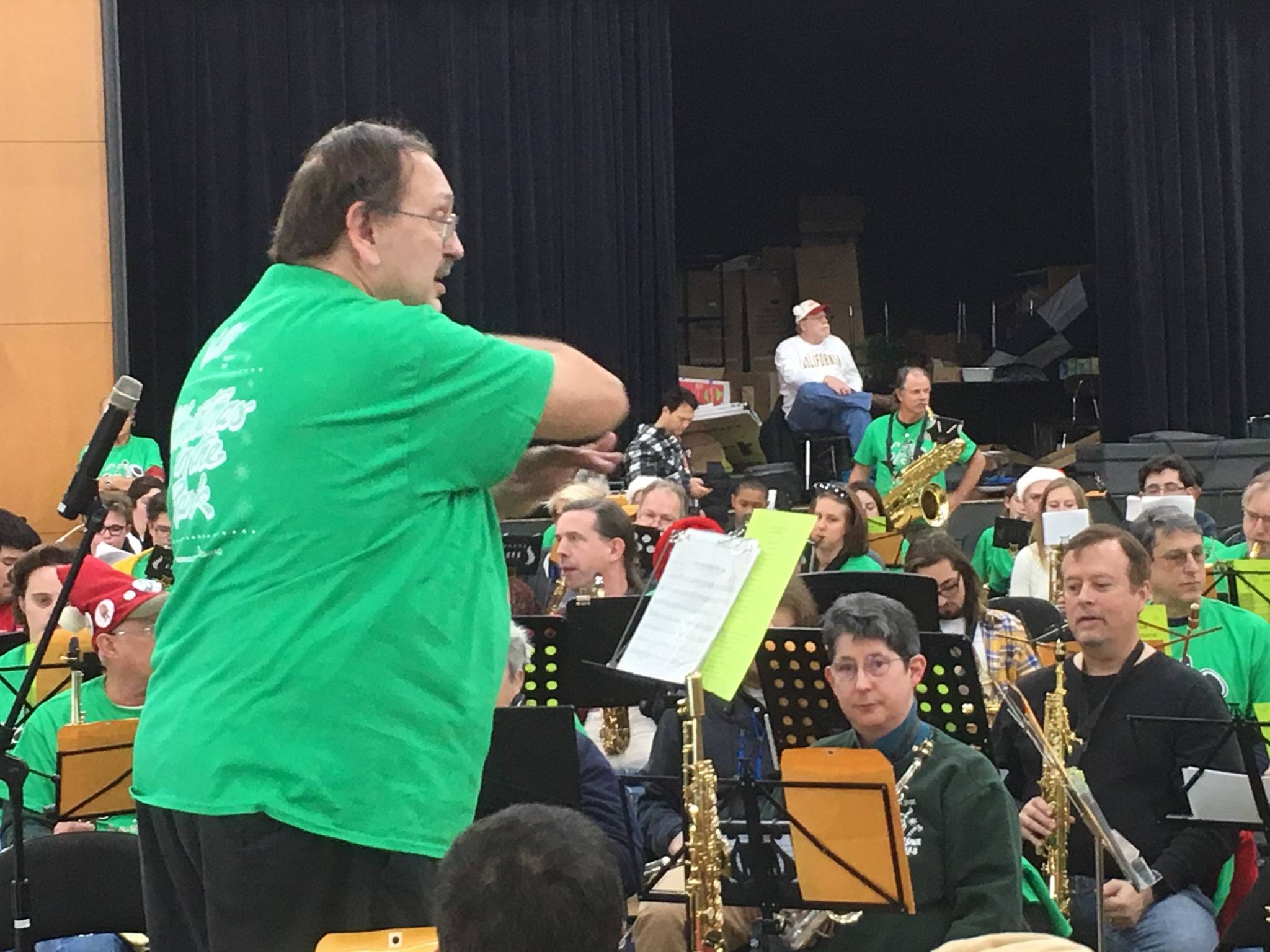 The players gather in the morning the day of the concerts. They don’t get the music ahead of time, but those who have been participating for many years have probably played most of the repertoire over time. Ray has a large library that he rotates through, although he often revises the charts between airings. He also adds one to three new charts each year, so there is new material for everyone.