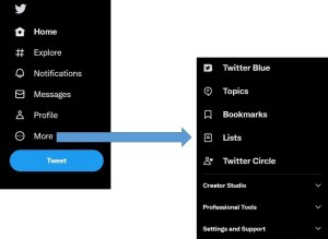 The way to exercise the most control is through the Twitter List function. Lists are easily accessible through the “More” menu option. From there, a user can create multiple lists grouped however they choose. Each list allows up to 100 items. An item can be an individual saved tweet, or it can be an account. With lists, there are no ads, only the content from the items on the list.