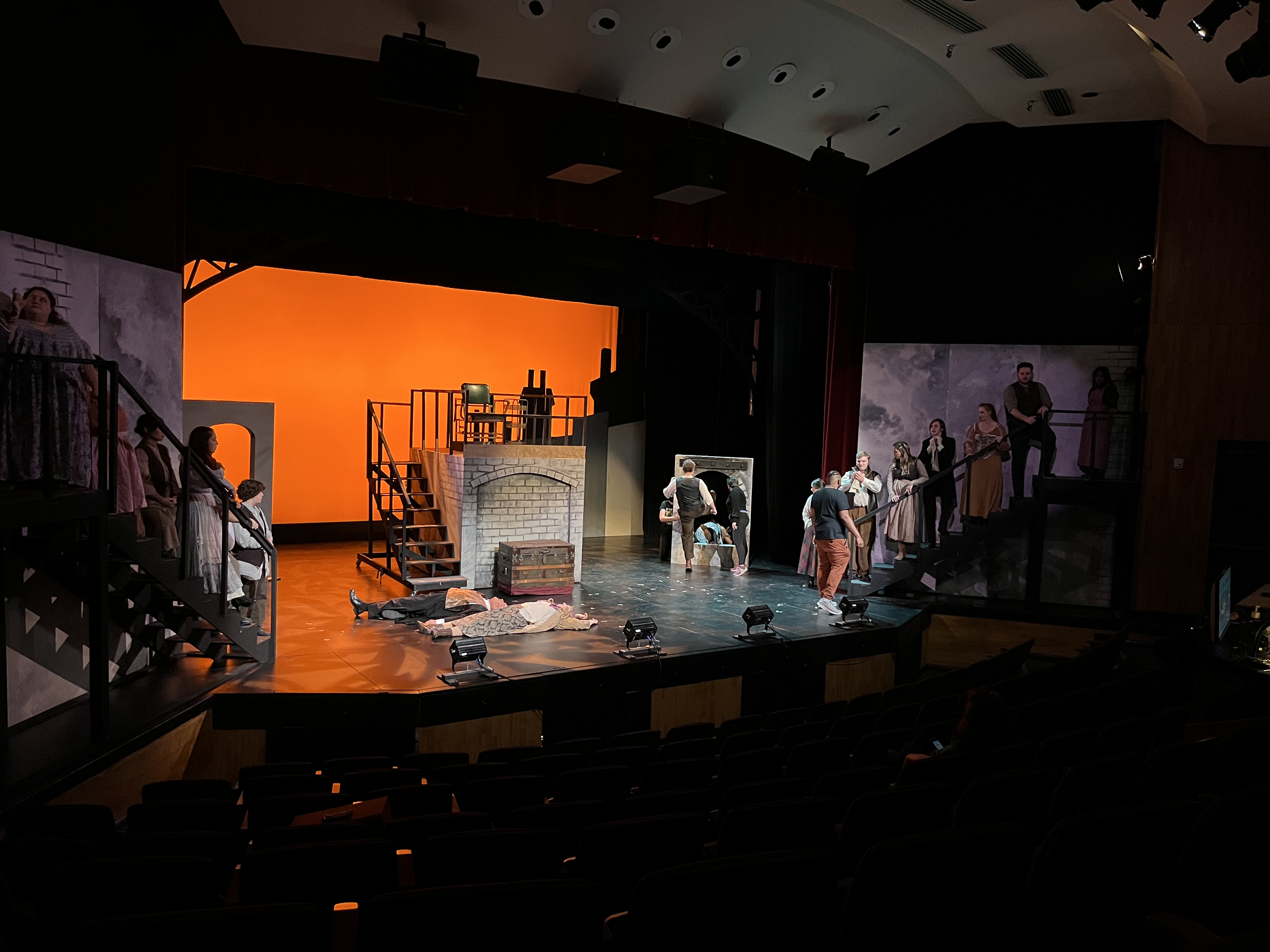 (Published 26 October 2023): This essay is an extension of the pit chronicle for SCP’s 2023 production of Sweeney Todd expanded to the production overall. I was fortunate to be invited to view the first dress rehearsal for this production as they were putting all the pieces together, a vantage point that I haven’t usually had. As a musician and music director, I’ve been through many tech weeks, but generally from the orchestra’s perspective which meant that I was focused on the music and not the overall production’s tweaks and adjustments. This time, I didn’t have to watch a score but was instead free to observe the overall process in play.